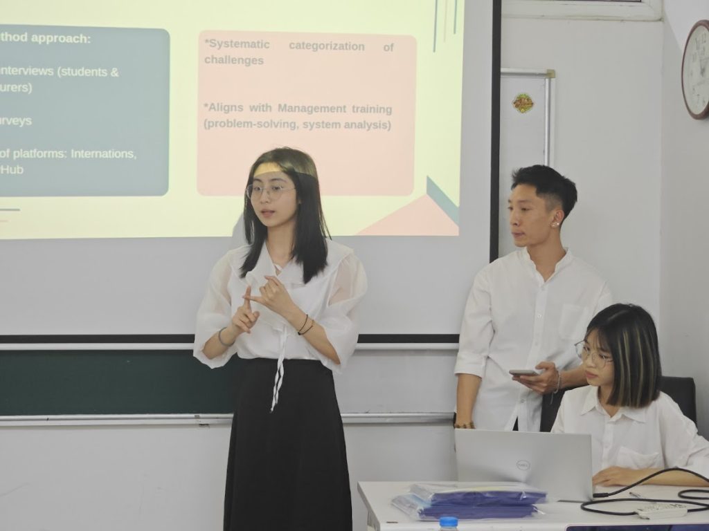 Trước đó, để giúp các nhóm thực hiện đề tài nghiên cứu có một bài báo cáo kết quả tốt và thuyết trình hiệu quả trước Hội đồng nghiệm thu, Trường Quốc tế đã tổ chức các workshop tập huấn hướng dẫn cách trình bày các phần cơ bản trong một báo cáo nghiên cứu khoa học, các lưu ý khi chuẩn bị bài báo cáo; hướng dẫn sử dụng phần mềm SPSS và phần mềm hỗ trợ khác.