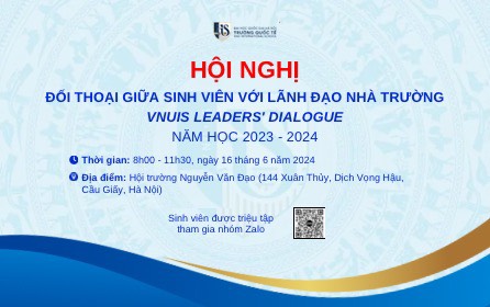 Ngày 16/6/2024, Trường Quốc tế – Đại học Quốc gia Hà Nội tổ chức chương trình “Tọa đàm với Ban Giám hiệu – The Leader’s Dialogue 2024”. Cụ thể như sau: