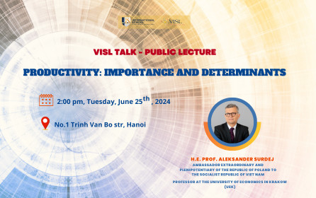 Câu lạc bộ Nhà khoa học, Trường Quốc tế – Đại học Quốc gia Hà Nội, tổ chức chương trình bài giảng đại chúng “Productivity: Importance and Determinants”. Cụ thể như sau: