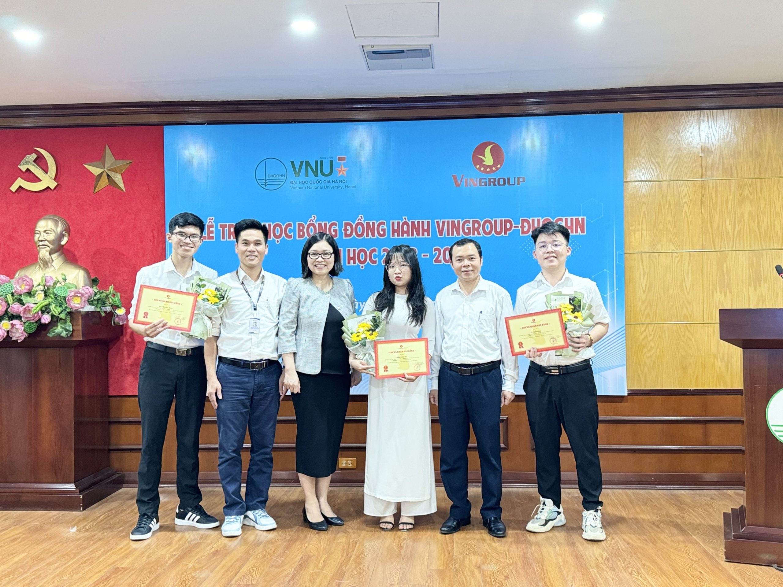 Xin được chúc mừng các bạn sinh viên xuất sắc được nhận học bổng Đồng hành Vingroup – ĐHQGHN. Chúc các bạn tiếp tục gặt hái được nhiều thành công hơn nữa trong thời gian tới.