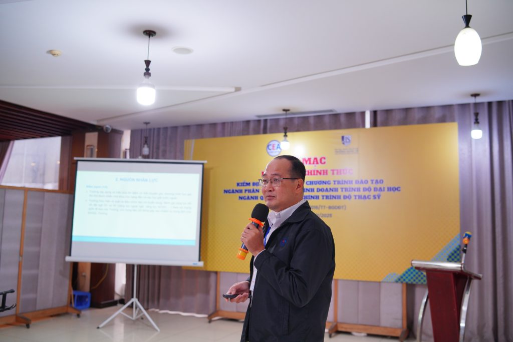 TS. Vũ Thế Dũng – thành viên, trình bày những điểm mạnh về chuẩn đầu ra của 2 chương trình đào tạo.