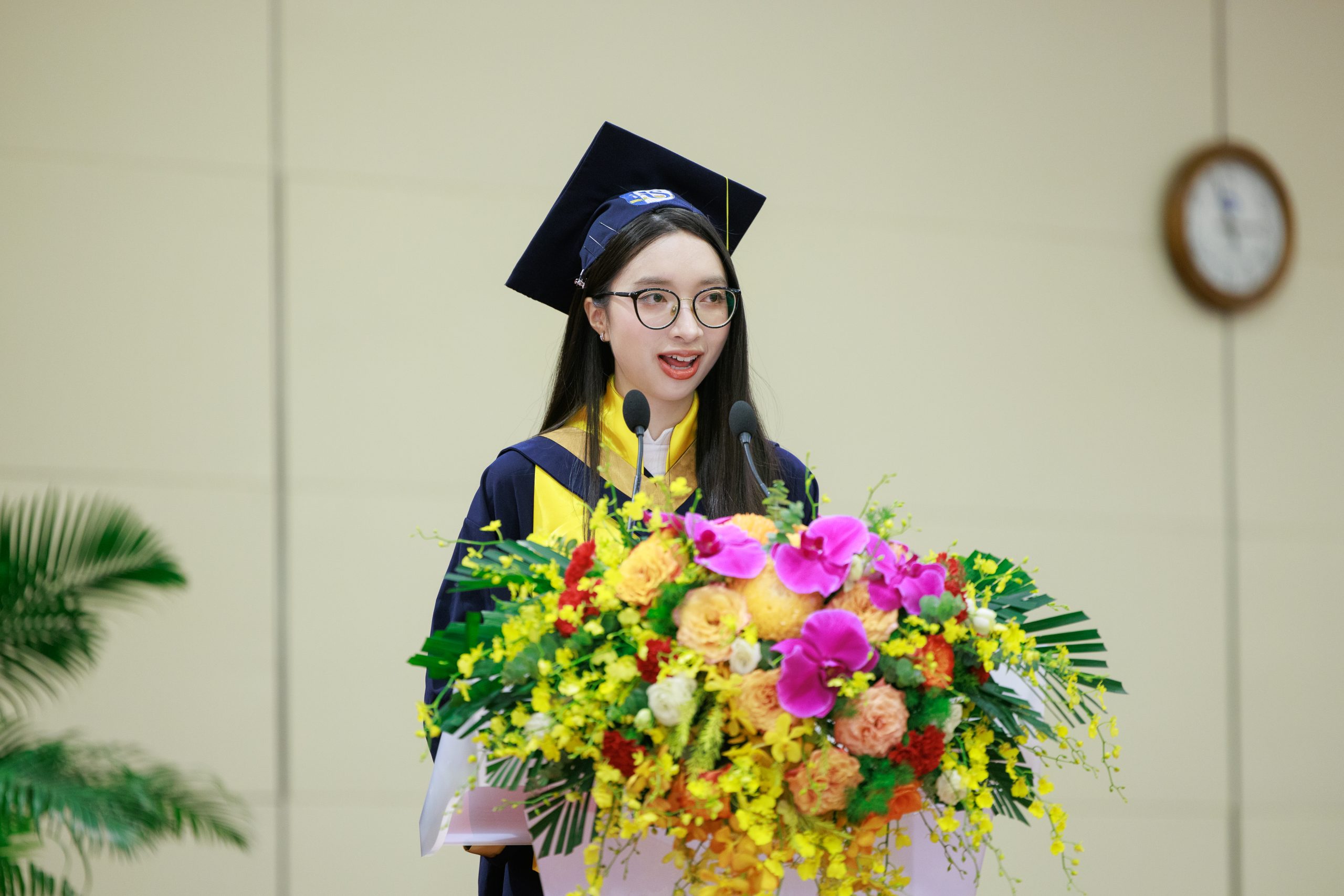 Được biết, em Nguyễn Thảo Vi, sinh viên ngành Hệ thống thông tin quản lý đã xuất sắc hoàn thành chương trình đào tạo trong vòng 3 năm rưỡi với điểm trung bình các môn học đạt 3.95/4 để trở thành thủ khoa tốt nghiệp sớm của ngành cũng như của nhà trường.