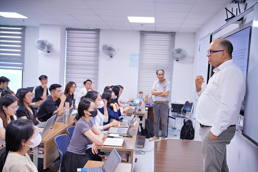 GS.TS. Sabri Boubaker chia sẻ nghiên cứu với sinh viên và giảng viên Trường Quốc tế.