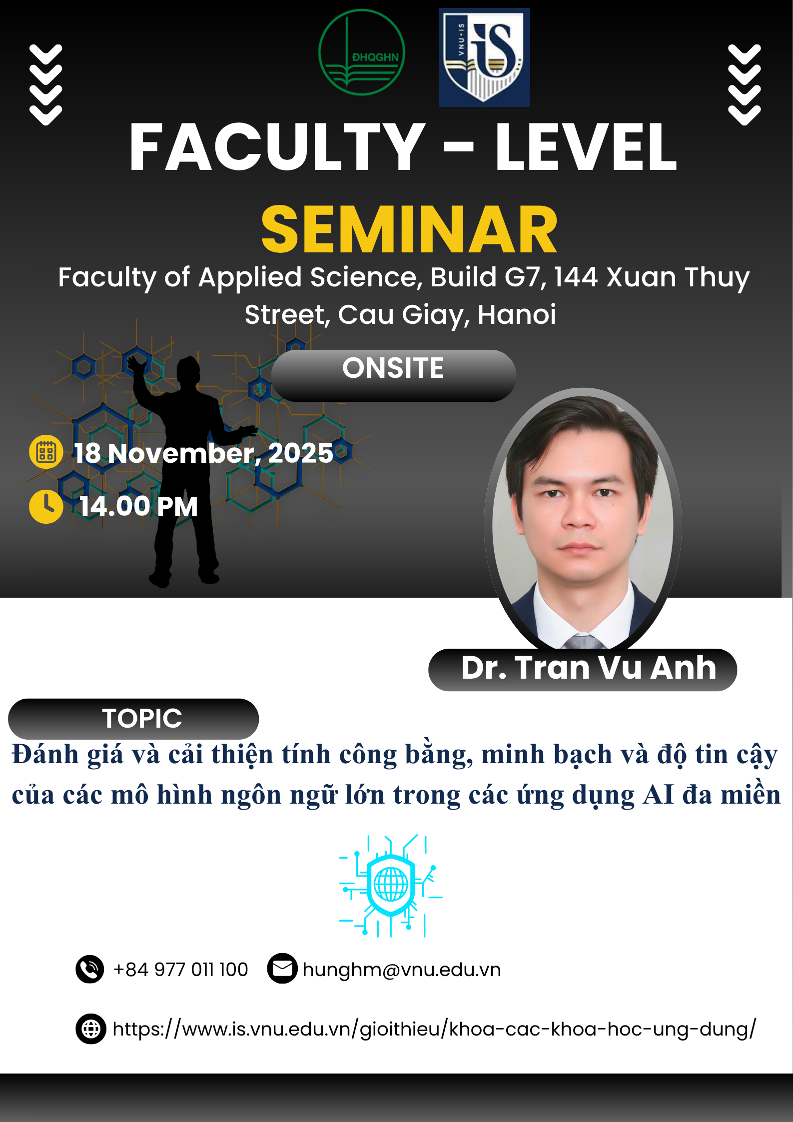Khoa Các Khoa Học Ứng Dụng trân trọng thông báo: BUỔI SEMINAR KHOA HỌC ĐỊNH KỲ Thời gian: 14h00, Thứ Ba ngày 18/11/2025. Địa điểm: Trường Quốc tế – ĐHQGHN, phòng đọc thế giới Nga, tầng 4, toà G7, 144 Xuân Thuỷ, Cầu Giấy, Hà Nội Người trình bày: TS. Trần Vũ Anh Nội […]