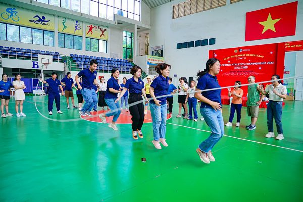Điểm nhấn của chuỗi hoạt động chính là chương trình “VNU-IS Women Athletics Championship 2023” diễn ra sáng ngày 15/10/2023 với mục đích gắn kết các công đoàn viên trong nhà trường thông qua các hoạt động thể thao, văn nghệ nhằm lan tỏa thông điệp hướng tới giá trị “Thân – Tâm – Tuệ” của nhà trường. Chương trình đã thu hút được sự quan tâm của đông đảo công đoàn viên tham gia ở các nội dung thi đấu cũng như biểu diễn văn nghệ. Có thể nói chương trình là sự đột phá trong hoạt động công đoàn tại ĐHQGHN với hình thức mới mẻ, sáng tạo, vừa chúc mừng phái nữ một cách bất ngờ, vui vẻ, lại vừa kết hợp được rèn luyện thể thao theo hình thức cá nhân và tập thể. Với mong muốn lan tỏa tinh thần yêu thể thao, rèn luyện sức khỏe đối với các nữ công đoàn viên, Ban tổ chức đã tổ chức thi đấu bóng chuyền hơi, nhảy dây cá nhân dành riêng cho các nữ công đoàn viên tại các tổ công đoàn trực thuộc. Tham dự và đến cổ vũ tinh thần cho phái nữ, các nam công đoàn viên lần đầu được chứng kiến và chiêm ngưỡng những màn thi đấu đầy cam go, kịch tính giữa các đội thi.
