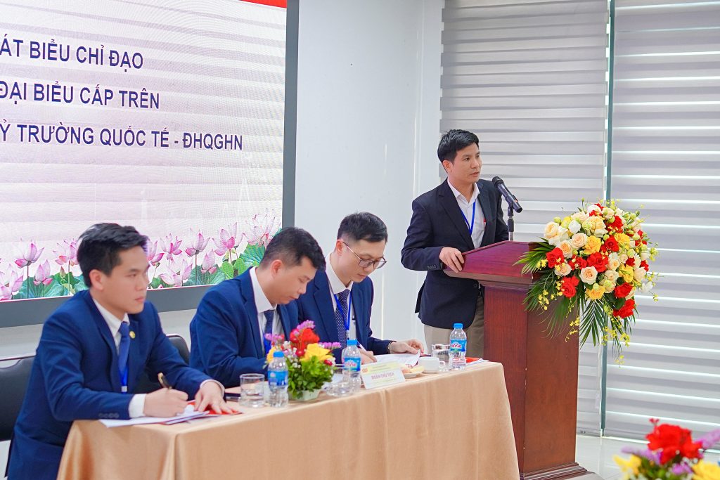Đồng chí Lê Trung Thành – Bí thư Đảng ủy, Hiệu trưởng Trường Quốc tế, phát biểu chỉ đạo tại Đại hội.