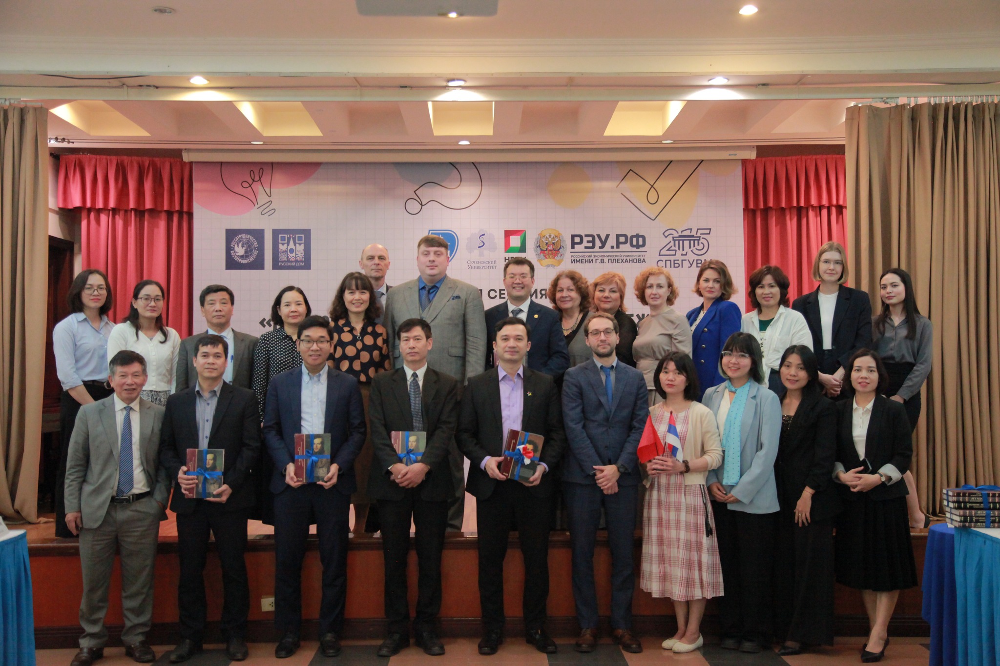 Tham dự phiên họp có PGS.TS Lê Tuấn Anh – Trưởng Ban Hợp tác phát triển ĐHQGHN, đại diện Bộ Giáo dục và Đào tạo, các trường đại học, tổ chức tại Hà Nội. Về phía Liên bang Nga có Giám đốc Trung tâm Khoa học và Văn hóa Nga V. Murashkin, đại diện Bộ Giáo dục và Khoa học Nga thuộc Đại sứ quán Nga tại Việt Nam E. Mitrofanov, đại diện các trường đại học và tổ chức của Nga.