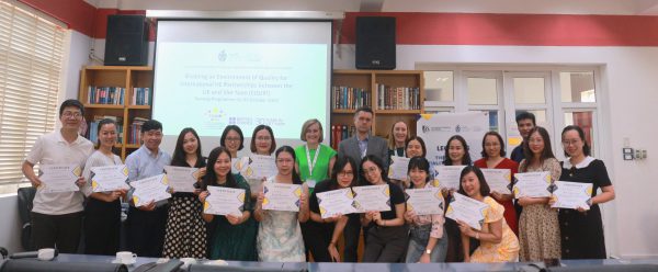 On the first day of the training session, university staff and faculty members attended the presentations on “Building an Internal Quality Assurance System.” Cardiff Metropolitan University speakers presented the framework and assessment standards of the United Kingdom, Vietnam, and ASEAN (including the QAA and AUN linkage), as well as an overview and comparison of reference points between the United Kingdom, Vietnam, and ASEAN.