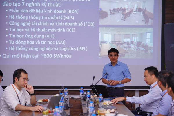 The workshop attendees listened to the presentation on the proposal for building practical labs for the Engineering – Technology training programs. These labs are designed based on real working environments, meeting the operational criteria that businesses are currently applying. Students will be guided by lecturers to consolidate their knowledge foundation, while businesses will accompany them to enhance practical skills and professional competencies. Through this, they will accumulate experience even while still in school. In the labs, students are exposed to real-world problems posed by businesses; lecturers lead student groups through appropriate workflows to complete projects and achieve the best results. Besides practical experience, students can also develop soft skills, attitudes, and responsibilities towards their work. When interning and entering the professional working environment, they can immediately engage in work processes as required by the companies.