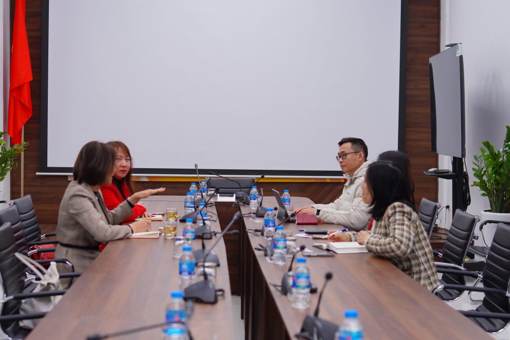 On February 21, 2025, representatives from the Embassy and Consulate General of Canada in Vietnam, Ms. Nguyen Tam Anh and Ms. Nguyen Thi Cam Tu, visited and held working discussions at the International School, Vietnam National University, Hanoi (VNU-IS). Representatives from the Office of Research and Partnership Development , and the Office of Academic Affairs, attended the meeting and engaged in discussions with the delegation.