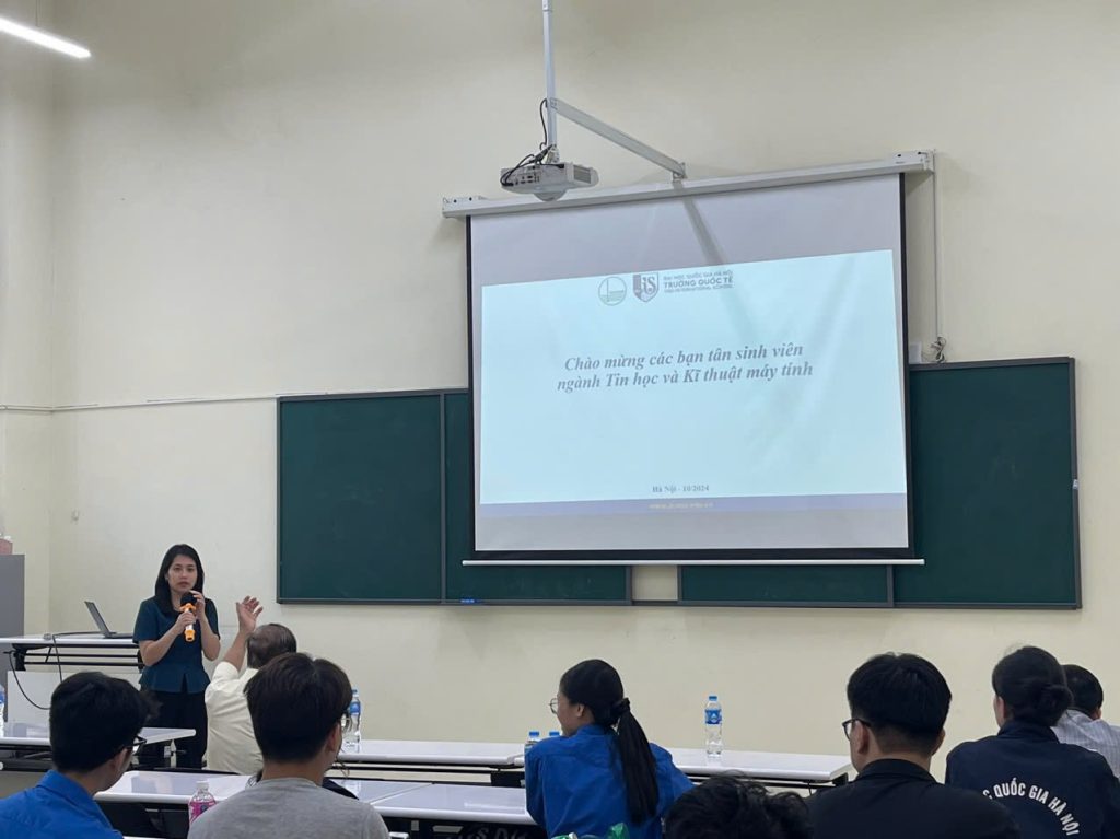 Ngày 14/10/2024, các giảng viên Khoa Kỹ thuật và Công nghệ, Trường Quốc tế – Đại học Quốc gia Hà Nội đã có buổi gặp mặt với tân sinh viên ngành Tin học và kỹ thuật máy tính, một ngành học mang lại nhiều trải nghiệm về kiến thức, về nội dung và đặc biệt có rất nhiều cơ hội công việc trong hiện tại và tương lai.