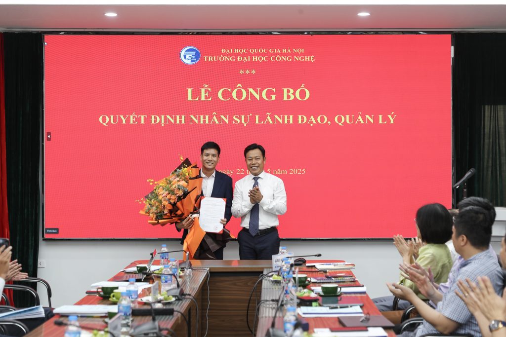 Bí thư Đảng ủy, Giám đốc ĐHQGHN Lê Quân đã trao Quyết định điều động và chỉ định đồng chí Lê Trung Thành – nguyên Bí thư, Hiệu trưởng Trường Quốc tế, giữ chức Bí thư Đảng ủy Trường Đại học Công nghệ nhiệm kỳ 2020 – 2025.