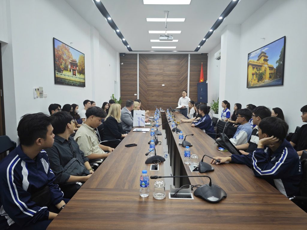 Cũng trong chuyến làm việc lần này, Đoàn công tác Trường Đại học Keuka đã có buổi gặp gỡ với sinh viên ngành Khoa học quản lý, chương trình song bằng. Các sinh viên này sẽ chuyển tiếp học 01 học kỳ tại Trường Đại học Keuka trong tháng 1/2025. Trong chương trình gặp gỡ, sinh viên đặt nhiều câu hỏi về thủ tục nhập cảnh, điều kiện sống, điều kiện học tập sắp tới của mình tại Mỹ. Vì đây là chuyến đi xa nhà đầu tiên nên các bạn sinh viên khá lo lắng và mong nhận được những giải đáp, hỗ trợ tận tình của các cán bộ, giảng viên Trường Đại học Keuka. Các thầy, cô giải đáp cặn kẽ những câu hỏi của các bạn sinh viên và cho biết các em sẽ được hướng dẫn cụ thể ngay sau khi đặt chân lên đất Mỹ. Thầy, cô cũng mong các bạn sẽ nhanh chóng hòa nhập vào môi trường học tập mới, không ngại hỏi, không ngại giao tiếp và kết bạn để chuyến đi học chuyển tiếp thành công, thu nhận được nhiều kiến thức và kinh nghiệm bổ ích.