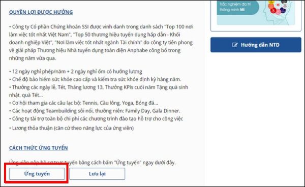 Bước 2: Chọn Ứng Tuyển vị trí làm