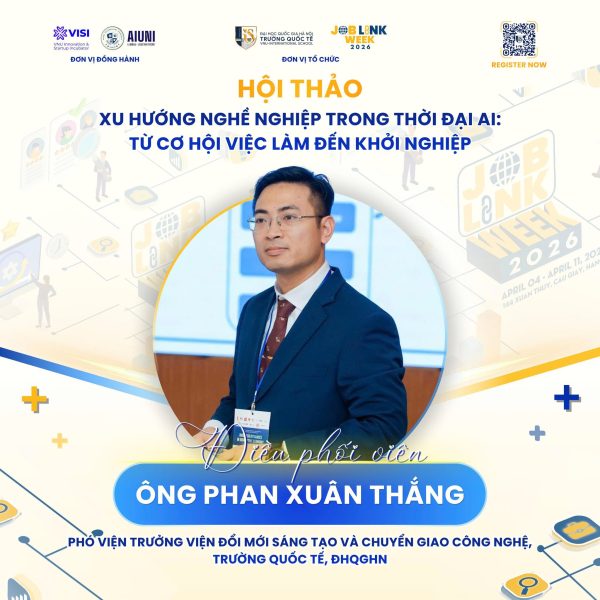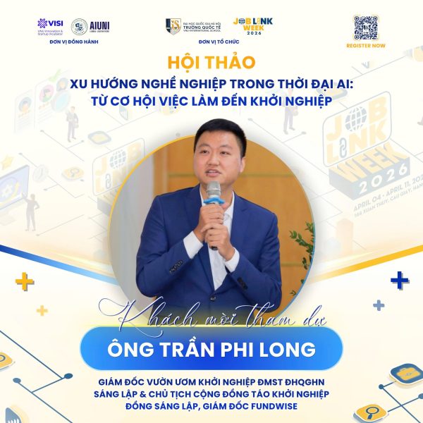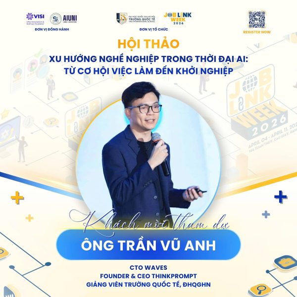 Nằm trong khuôn khổ JOBLINK WEEK 2026 – Tuần lễ Kết nối việc làm do Trường Quốc tế, Đại học Quốc gia Hà Nội tổ chức, chương trình Kick-off Talk sẽ mở đầu chuỗi sự kiện với không gian giao lưu, kết nối giữa sinh viên và các chuyên gia trong lĩnh vực công nghệ, khởi nghiệp và đổi mới sáng tạo.