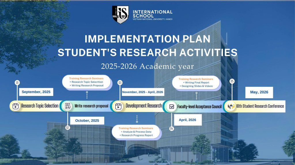 Thực hiện Kế hoạch số 1858/KH-TQT ngày 16/ 09/2025 về việc triển khai hoạt động nghiên cứu khoa học và đổi mới sáng tạo (NCKH&ĐMST) sinh viên Trường Quốc tế năm học 2025 – 2026, Trường Quốc tế – Đại học Quốc gia Hà Nội thông báo về việc đăng ký đề tài NCKHSV năm […]