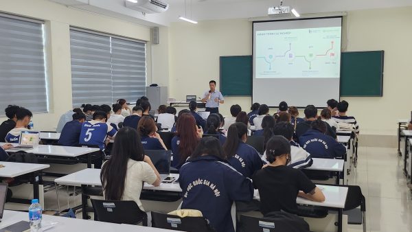 Trong tháng 6 vừa qua, sinh viên Trường Quốc tế – Đại học Quốc gia Hà Nội (ĐHQGHN) đã có giờ học với ông Nguyên Hưng Bắc – Phó Tổng Giám đốc Công ty TNHH Hoàng Quốc trong học phần Phát triển bản thân và tính chuyên nghiệp tại Hòa Lạc.