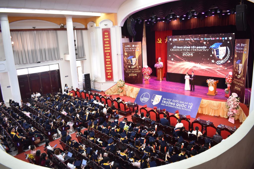 Trong hai ngày 22–23/8/2025, Trường Quốc tế – Đại học Quốc gia Hà Nội (ĐHQGHN) đã tổ chức Lễ Trao bằng tốt nghiệp năm 2025 cho 1.205 tân cử nhân và tân thạc sĩ. Sự kiện không chỉ đánh dấu cột mốc trưởng thành của các tân khoa mà còn khẳng định vị thế tiên phong của Trường Quốc tế trong đào tạo nguồn nhân lực chất lượng cao hội nhập quốc tế.