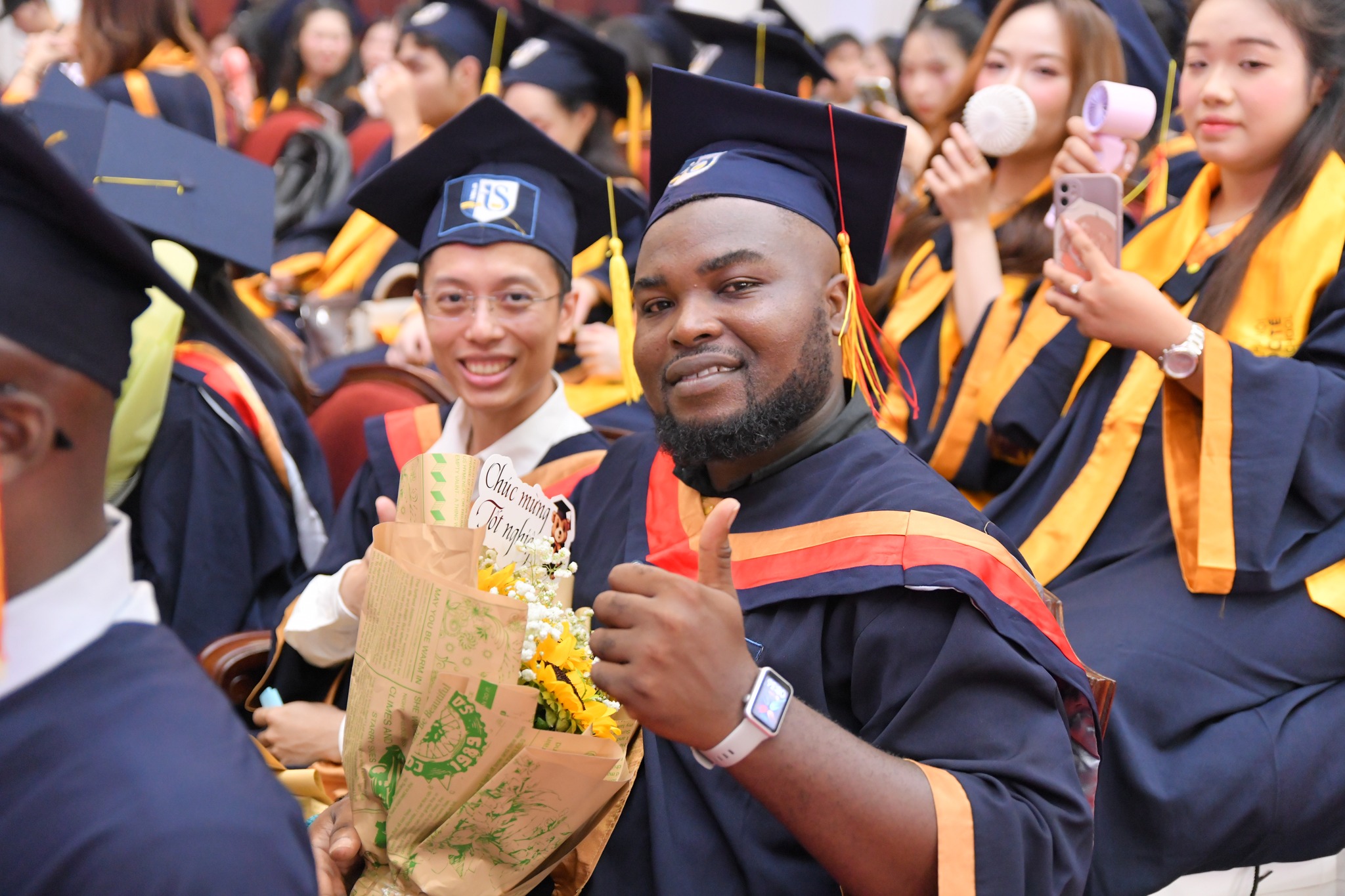 Đại diện tân thạc sĩ, anh Trần Minh Đức (ngành Quản trị Tài chính, hiện công tác tại Viettel Telecom) bày tỏ: Chúng tôi từng lo lắng về khả năng cân bằng công việc, học tập và cuộc sống trong một môi trường đào tạo quốc tế. Nhưng nhờ sự tận tâm của thầy cô, sự hỗ trợ chu đáo của Nhà trường và tinh thần đoàn kết của các học viên, chúng tôi đã vượt qua từng kỳ thi, từng thử thách để có được ngày hôm nay.