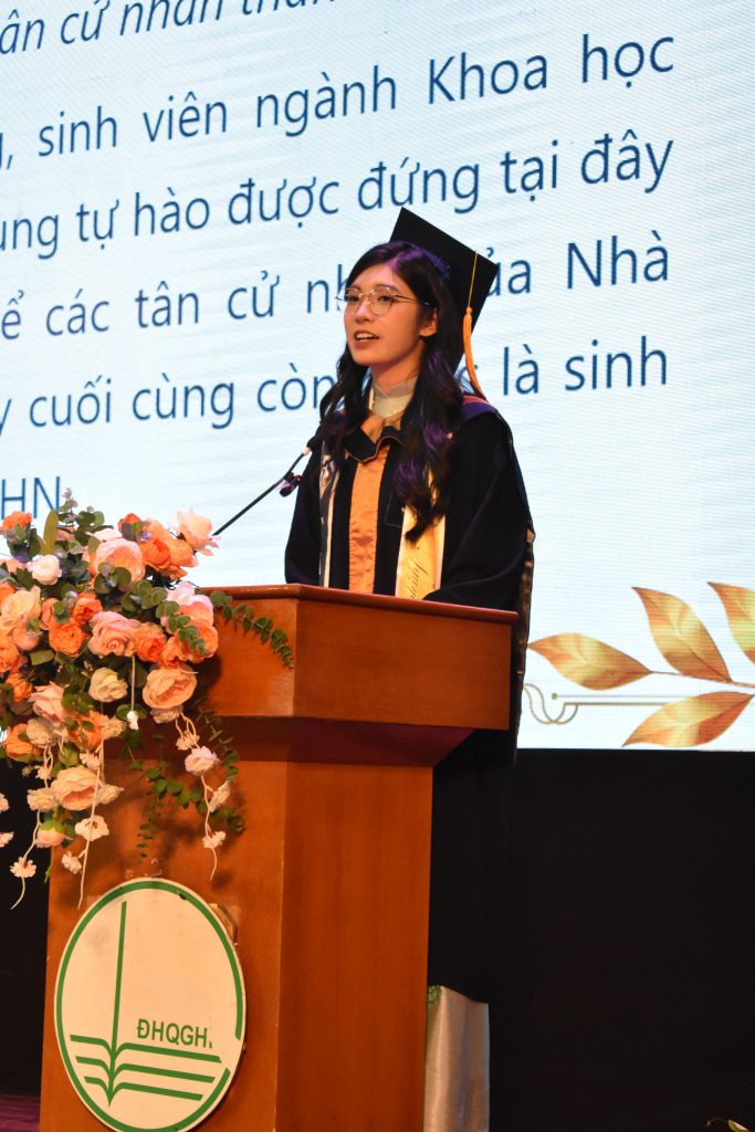 Đại diện các tân cử nhân phát biểu trong chương trình.