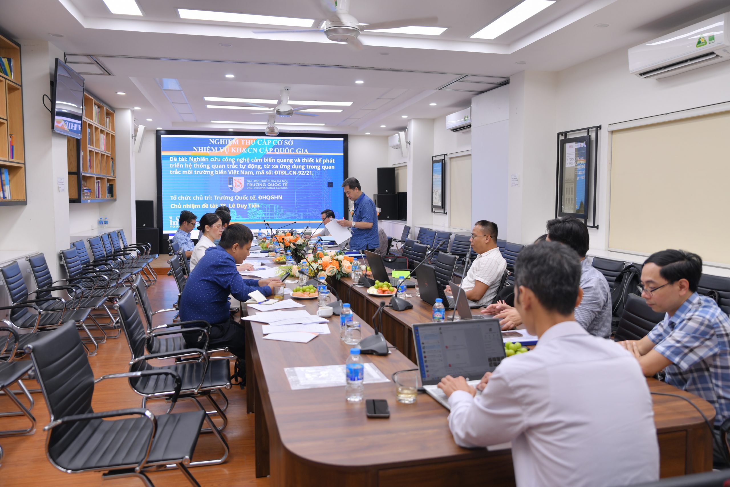 Ngày 30/9, Trường Quốc tế đã tổ chức buổi nghiệm thu cấp cơ sở cho nhiệm vụ khoa học và công nghệ cấp quốc gia quan trọng: “Nghiên cứu công nghệ cảm biến quang và thiết kế phát triển hệ thống quan trắc tự động, từ xa ứng dụng trong quan trắc môi trường biển Việt Nam”.