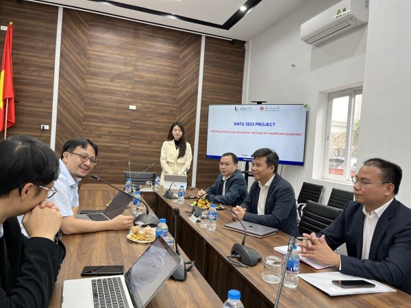 Trong khuôn khổ chuyến làm việc, đại diện hai nhóm nghiên cứu đã có buổi họp trao đổi về các mảng hợp tác trong khuôn khổ đề tài hợp tác quốc tế SATU 2023. Tại buổi họp, ThS. Vũ Thị Huệ – đại diện cho Nhóm nghiên cứu mạnh liên ngành về Y sinh và sức khỏe đã trình bày chi tiết về nội dung đề tài, tình hình triển khai, các khó khăn gặp phải và đề xuất một số biện pháp tháo gỡ. Phần trình bày nhận được sự đồng tình từ đại diện nhóm nghiên cứu hai bên. Ngoài ra, tại buổi PGS.TS. Nguyễn Như Tùng và TS. Hà Mạnh Hùng – giảng viên Khoa Các khoa học ứng dụng, đại diện cho Nhóm nghiên cứu Điều khiển thông minh và Trí tuệ nhân tạo, đã về các định hướng nghiên cứu liên ngành, ứng dụng Trí tuệ nhân tạo và IT trong sức khỏe, cũng như cùng phát triển một số định hướng nghiên cứu mới là thế mạnh của hai nhóm nghiên cứu.