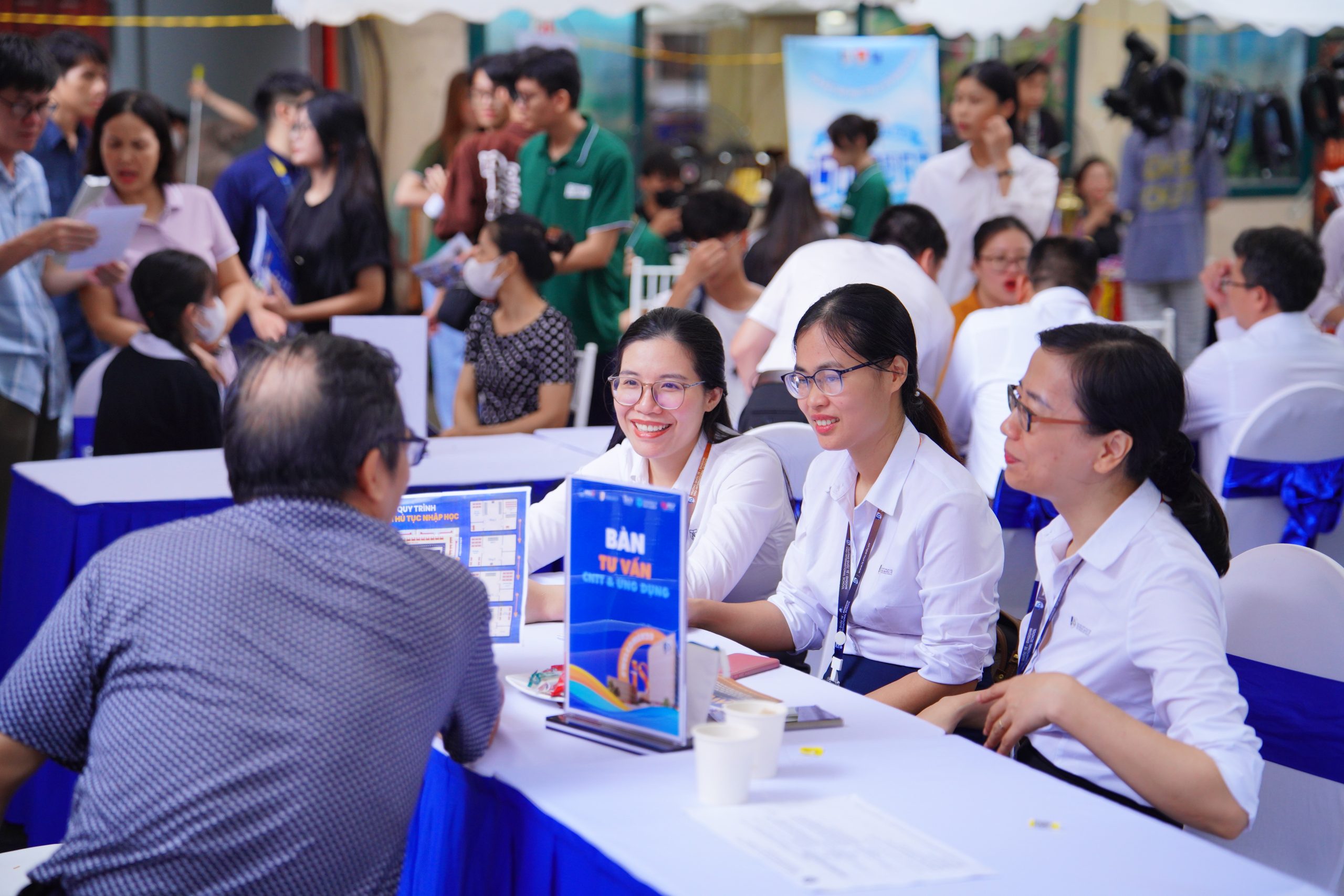 Các thầy, cô trực bàn tư vấn chuyên sâu, hướng nghiệp để giải đáp mọi thắc mắc của phụ huynh và tân sinh viên.