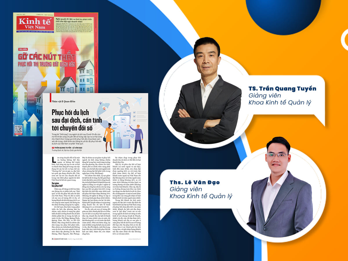 TS. Trần Quang Tuyến – chuyên gia, giảng viên Trường Quốc tế – Đại học Quốc gia Hà Nội và ThS. Lê Văn Đạo – giảng viên Nhà trường có bài viết “Phục hồi du lịch sau đại dịch, cần tính tới chuyển đổi số” trên tờ VNEconomy.