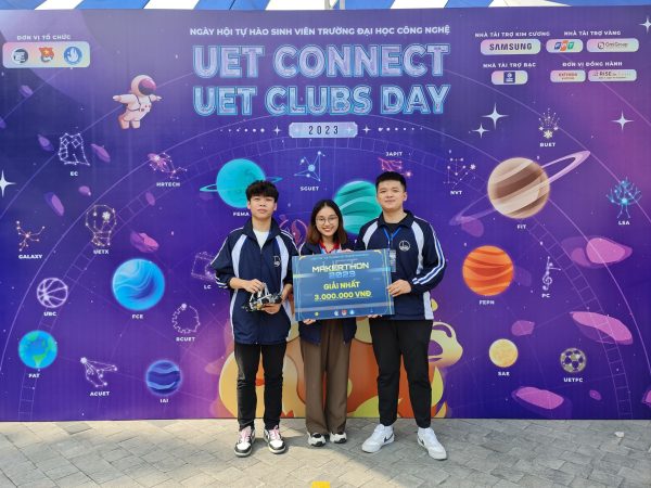 Bộ ba ISER ngành Tự động hóa và Tin học, Trường Quốc tế – Đại học Quốc gia Hà Nội (ĐHQGHN) – Phạm Tuấn Minh, Vũ Huy Khải, Nguyễn Thu Hương – vừa chinh phục ngôi vị Quán quân Cuộc thi UET MAKERTHON 2023 do Trường Đại học Công Nghệ – ĐHQGHN tổ chức.