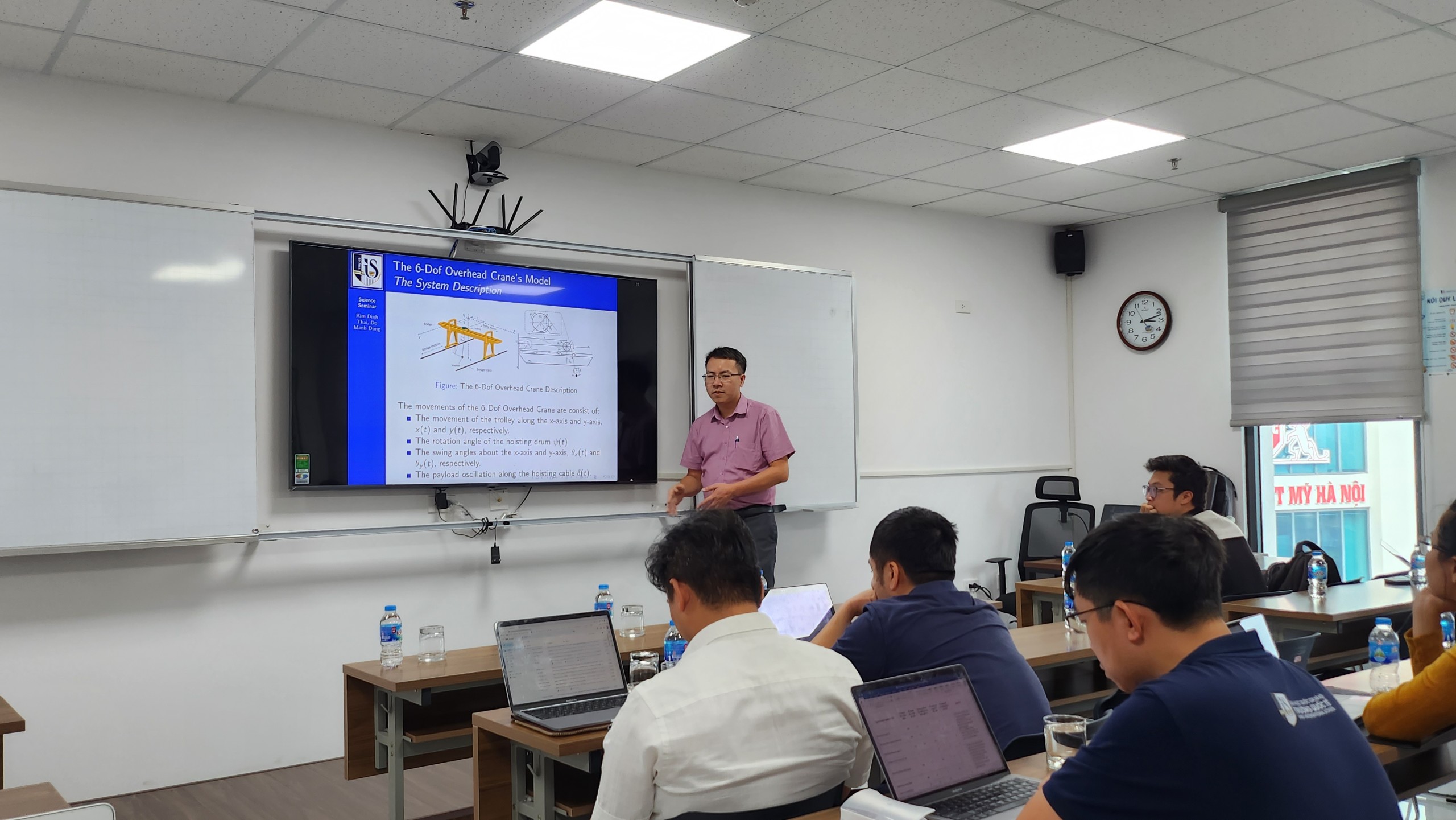 Hình 4: TS. Kim Đình Thái – giới thiệu về mô hình toán học của hệ cần cẩu 3D 6 bậc tự do