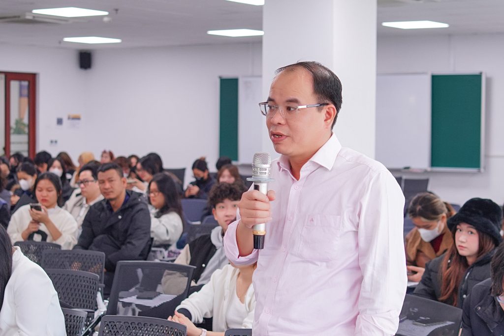 Phó Hiệu trưởng Nguyễn Quang Thuận chia sẻ chương trình đào tạo Song bằng của Trường Quốc tế là những chương trình có nhiều điểm đặc sắc.