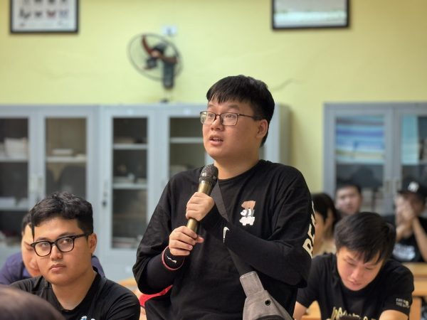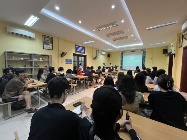 Sinh viên Trường Quốc tế chăm chú lắng nghe phần giới thiệu của cán bộ Vườn thú Hà Nội.