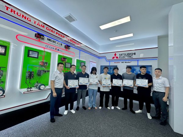 Tại khóa học, sinh viên ngành Tự động hóa và Tin học được trang bị những kiến thức cơ bản về các sản phẩm và giải pháp tự động hóa của hãng Mitsubishi – một trong những tập đoàn hàng đầu về Tự động hóa của Nhật Bản. Các bạn được trải nghiệm làm việc, thực hành với các sản phẩm và giải pháp mới nhất, đang được áp dụng phổ biến tại các nhà máy sản xuất hiện đại. Ngoài ra, các chuyên gia của Công ty cũng trực tiếp hướng dẫn từ lý thuyết đến thực hành, chia sẻ kinh nghiệm làm việc, định hướng tương lai. Các bạn sinh viên rất hào hứng tham gia khóa đào tạo, được thực sự “nhúng mình” vào công việc của một kỹ sư tự động hóa, hiểu rõ hơn về ngành nghề và định hướng trước khi bước vào giai đoạn học quan trọng tại Trường.