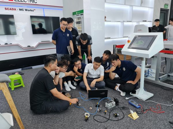 Sinh viên ngành Tự động hóa và Tin học tham gia khóa đào tạo tại Trung tâm giải pháp tự động hóa, Công ty Mitsubishi.