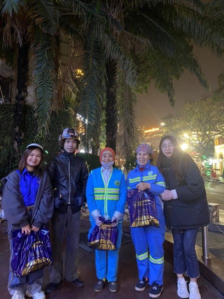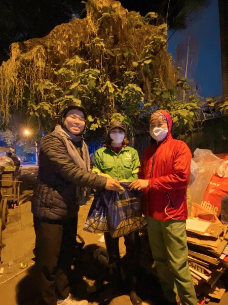 Sinh viên Trường Quốc tế tặng quà cho người lao động khó khăn tại Hà Nội.