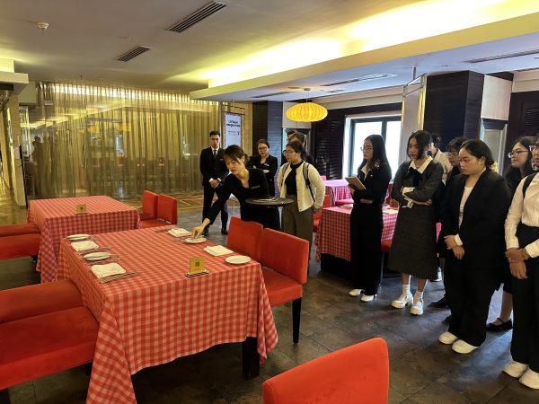 Các nhân viên đã chia sẻ những câu chuyện lịch sử đằng sau mỗi dụng cụ ăn uống, tiết lộ bí quyết set-up bàn ăn chuẩn mực, và truyền cảm hứng cho các bạn sinh viên về thế giới ẩm thực Châu Âu đầy màu sắc. Đặc biệt, các bạn sinh viên được áp dụng kiến thức đã học vào thực tế, tự tay set-up bàn ăn, sử dụng dụng cụ và thưởng thức các món ăn Châu Âu theo đúng nghi thức.