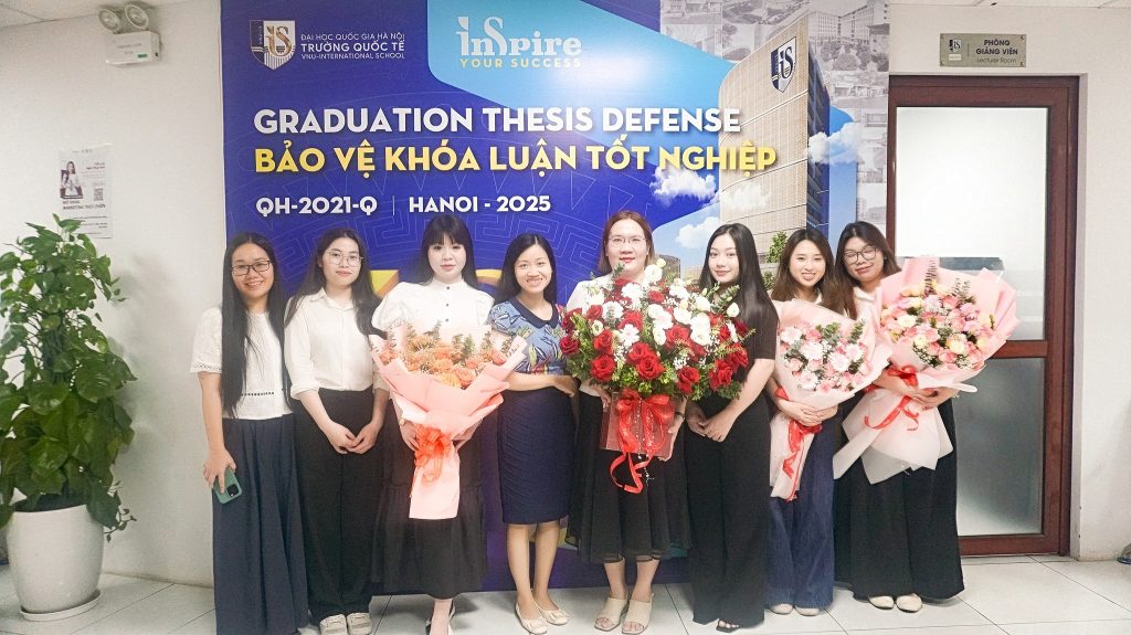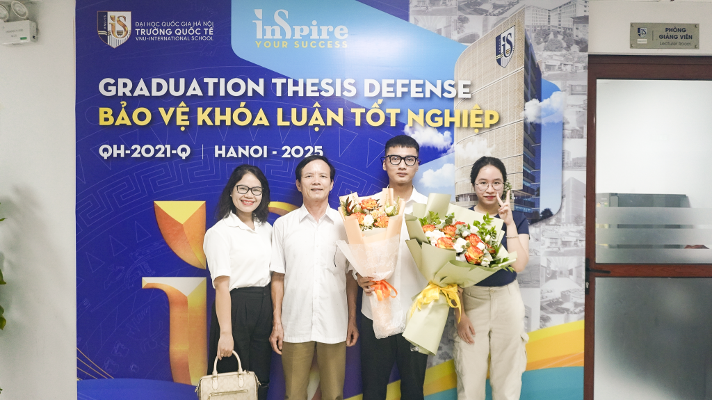 Xin được chúc mừng các sinh viên chương trình do Đại học Quốc gia Hà Nội cấp bằng đã bảo vệ thành công khóa luận tốt nghiệp. Chúc các bạn tiếp tục gặt hái thêm nhiều thành công trong thời gian tới. Trường Quốc tế luôn đón chào các bạn quay về để học tập tiếp ở các bậc cao hơn cũng như cùng hợp tác trong công việc sau này.