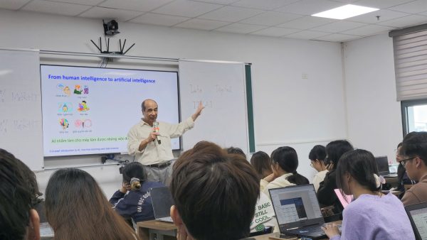 Trong học kỳ I năm học 2024-2025, sinh viên Trường Quốc tế – Đại học Quốc gia Hà Nội (ĐHQGHN) đã có cơ hội được gặp gỡ và giao lưu cùng GS.TSKH. Hồ Tú Bảo – chuyên gia hàng đầu về khoa học dữ liệu và trí tuệ nhân tạo, cố vấn chuyên môn của chương trình Cử nhân Phân tích dữ liệu kinh doanh của Trường. Đây là cơ hội quý báu để các bạn sinh viên được tiếp cận kiến thức từ một chuyên gia quốc tế, đồng thời lắng nghe những chia sẻ thực tế từ các dự án nghiên cứu và ứng dụng mà GS. Hồ Tú Bảo đã trải nghiệm.