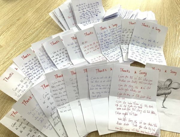 Trong năm học 2023-2024, hoạt động “Đổ não ra giấy” thuộc học phần đã tạo cơ hội cho các bạn sinh viên QH2022 tại Hòa Lạc thời gian lắng đọng để các bạn có thể viết lời cảm ơn và lời xin lỗi đến những người thân, bạn bè của mình. Hài hước, hạnh phúc, cảm động, tiếc nuối, bùi ngùi… – các cung bậc cảm xúc quý giá, chân thành đã được các bạn sinh viên chia sẻ qua những lời nhắn gửi dành cho bố mẹ, bạn bè, thầy cô… Hoạt động cũng cho thấy các bạn sinh viên Trường Quốc tế không chỉ năng động, giỏi giang, mà còn rất sâu sắc và tình cảm.