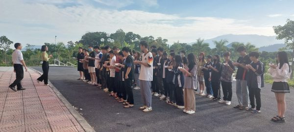 Sinh viên QH2023 tại Hòa Lạc thực hành bài tập giãn cơ vai – gáy