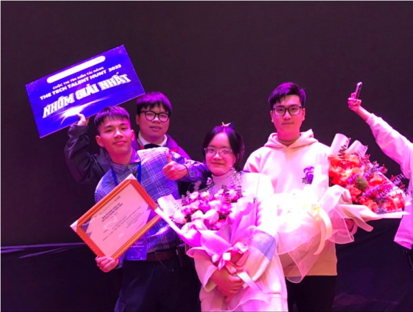 Tùng Dương và các thành viên trong nhóm Medtech đạt giải nhất cuộc thi VNU DHC Tech hunt