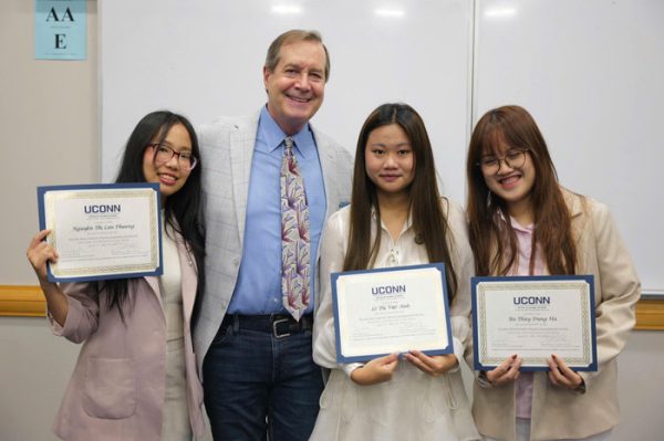 Trong suốt 4 năm đại học, Lan Phương (ngoài cùng bên trái) tích cực tham gia nhiều hoạt động học thuật để tích lũy kinh nghiệm và kiến thức chuyên môn. Ảnh: NVCC.