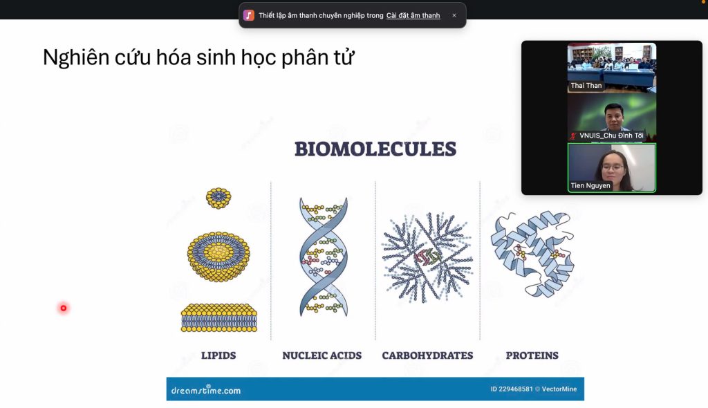 Tại buổi hội thảo, diễn giả đã chia sẻ vai trò then chốt của ngành Hóa sinh học phân tử trong việc giải mã những bí ẩn của sự sống ở cấp độ phân tử và những tác động to lớn đến y học, công nghệ sinh học và nhiều lĩnh vực khác nhau. TS. Thủy Tiên cập nhật những khám phá mới từ hóa sinh học phân tử đã mở ra những hiểu biết sâu sắc về các quá trình sinh học cơ bản, từ sự sao chép và phiên mã gen đến sự tổng hợp protein và các con đường tín hiệu tế bào. Nhờ đó chúng ta có thể hiểu rõ hơn về cơ chế gây bệnh ở cấp độ phân tử và phát triển các phương pháp chẩn đoán và điều trị bệnh hiệu quả hơn.