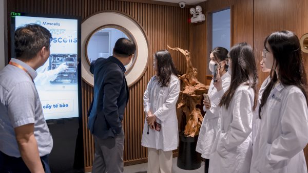 Các bạn sinh viên được giới thiệu và tham quan cơ sở vật chất hiện đại của hệ thống phòng thí nghiệm nuôi cấy tế bào, phòng xét nghiệm và phòng khám của Mescells.