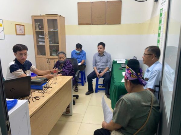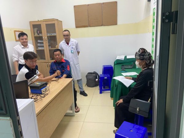 Tại hiện trường triển khai, nhóm nghiên cứu đã tiến hành thử nghiệm thiết bị trên bệnh nhân thật dưới sự phối hợp và giám sát của đội ngũ y bác sĩ bệnh viện. Các bệnh nhân được tiến hành đo đường huyết bằng thiết bị mới, với sự hỗ trợ từ kỹ thuật viên vận hành hệ thống và sự theo dõi sát sao của các bác sĩ chuyên môn. Các buổi làm việc rất nghiêm túc, thể hiện tinh thần hợp tác giữa nhóm nghiên cứu và cơ sở y tế địa phương.
