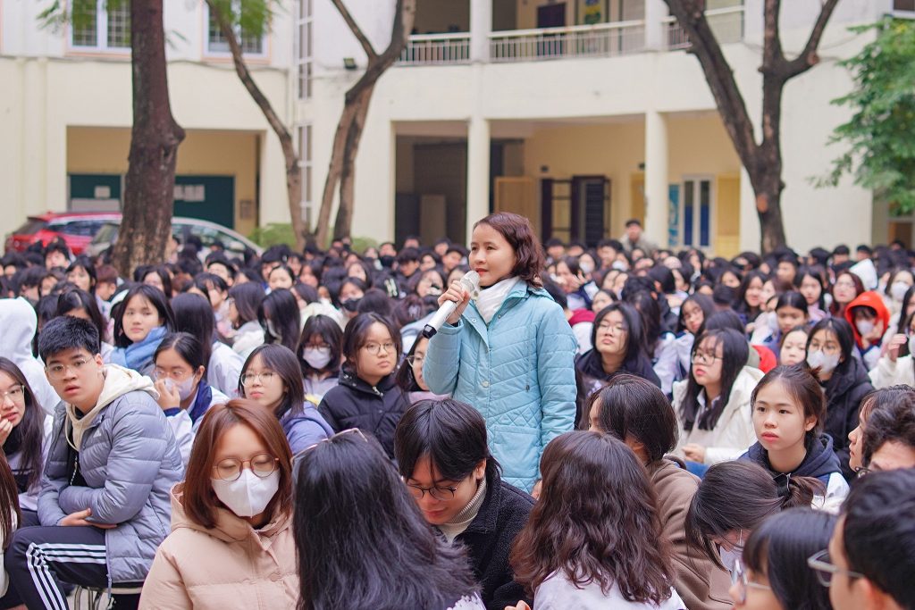 Không chỉ dừng lại ở phần cung cấp thông tin, buổi chia sẻ còn có phần giao lưu, hỏi đáp trực tiếp giữa học sinh với TS. Vương Thị Phương Thảo và đại diện Trường Quốc tế. Những thắc mắc về cấu trúc đề thi, tỷ lệ chọi, điều kiện tuyển sinh, cơ hội học bổng, hay thậm chí là định hướng nghề nghiệp đều được giải đáp cụ thể, giúp học sinh nắm bắt cơ hội học tập và rèn luyện phù hợp.