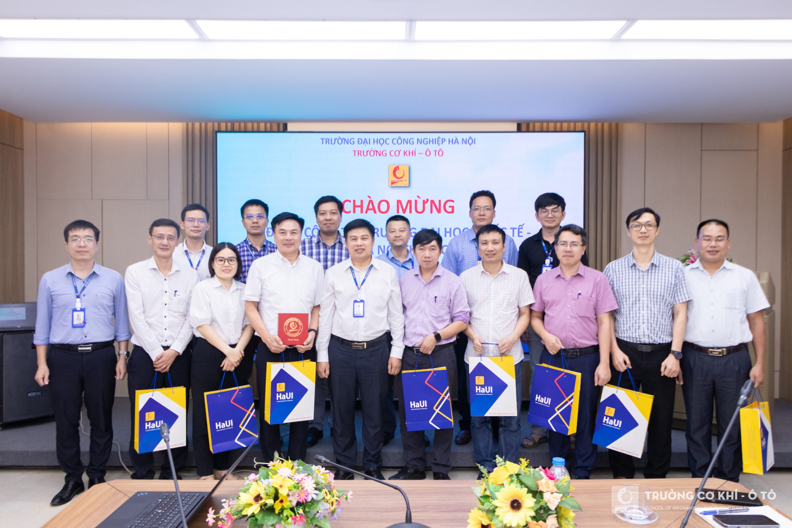 Ngày 16/7/2024, đoàn công tác Trường Quốc tế – Đại học Quốc gia Hà Nội (ĐHQGHN) do PGS.TS Nguyễn Văn Định – Phó Hiệu trưởng làm trưởng đoàn, có chuyến thăm và làm việc tại Trường Cơ khí – Ô tô thuộc Trường Đại học Công nghiệp Hà Nội. Tham dự buổi làm việc có PGS.TS. Hoàng Tiến Dũng – Hiệu trưởng Trường Cơ khí – Ô tô, đại diện lãnh đạo của Trường Quốc tế và Trường Cơ khí – Ô tô.
