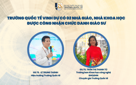 PGS.TS. Lê Trung Thành – Hiệu trưởng Trường Quốc tế, được công nhận đạt chuẩn chức danh Giáo sư liên ngành Điện – Điện tử – Tự động hóa. PGS.TS. Trần Thị Thanh Tú – Trưởng ban Khoa học công nghệ ĐHQGHN, chuyên gia Trường Quốc tế, được công nhận đạt chuẩn chức danh Giáo sư ngành Kinh tế.
