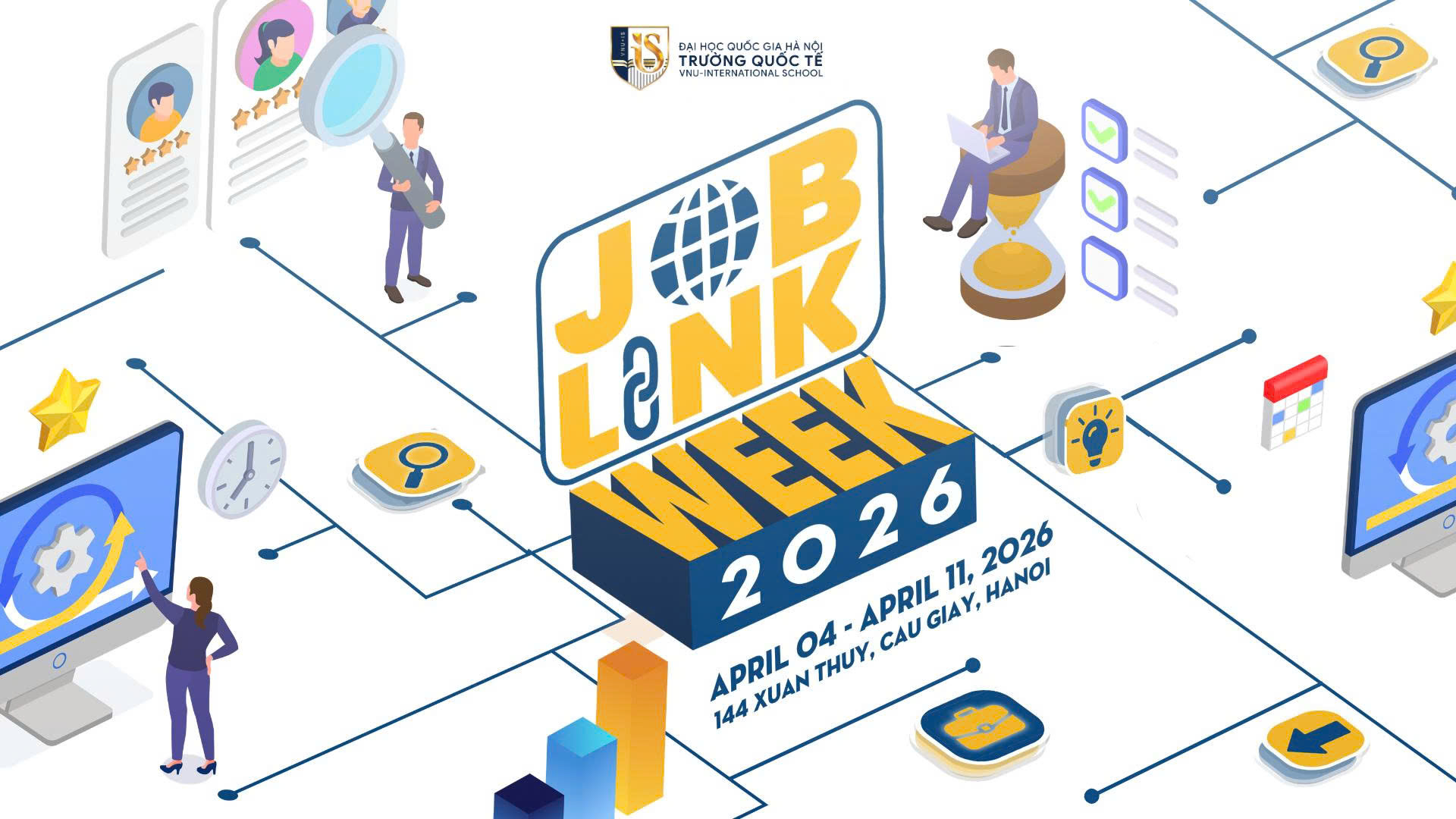 Tiếp nối thành công của các tuần lễ việc làm trước, VNU-IS Job Link Week 2026 – Tuần lễ Kết nối việc làm chính thức trở lại với mong muốn tiếp tục mở rộng không gian kết nối giữa nhà trường, doanh nghiệp, cựu sinh viên và người học; đồng thời tạo thêm nhiều cơ hội tuyển dụng, thực tập và định hướng nghề nghiệp thực chất dành cho sinh viên Trường Quốc tế – Đại học Quốc gia Hà Nội.